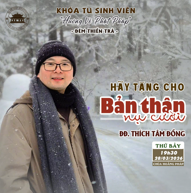 Tối Thứ Bảy (28/03/2026): Buổi chia sẻ “HÃY TẶNG CHO BẢN THÂN NỤ CƯỜI” cùng Đại Đức Thích Tâm Đồng – là khoảng không gian tĩnh lặng, bạn sẽ học cách vỗ về tâm hồn, buông bỏ áp lực và trao tặng chính mình một nụ cười bao dung sau bao vất vả.