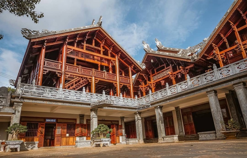 Chùa xây dựng không quá cao, các gian chùa rộng lớn tạo nên thế vững chãi giữa đất trời. Chất liệu để xây dựng chùa chủ yếu là gỗ. Tông màu nâu trầm của gỗ khiến cho ngôi chùa càng thêm phần trầm mặc và cổ kính. Từng đường nét điêu khắc trên các bức tường, cột chùa đều tinh xảo và kỹ lưỡng.