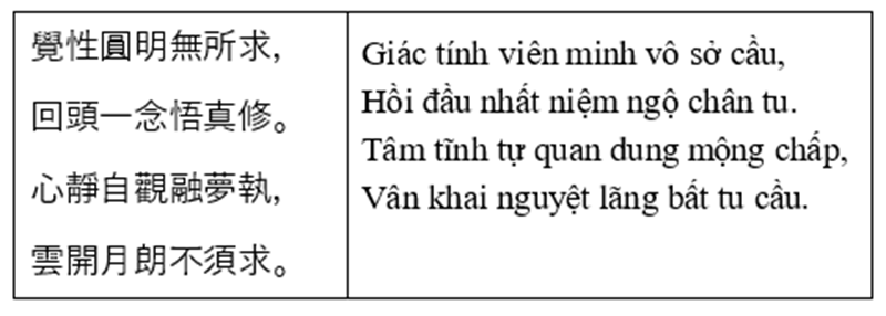 Bấy giờ, người hành giả nhìn sâu vào chính mình, thì sẽ thấy bờ mê tan dần, bến giác dần hiện.Khi ấy, biển tâm lặng sóng, hương thiền lan tỏa. Cảnh giới ấy được gói trọn trong vài vần thơ sau, như cánh sen vừa hé giữa bình minh giác ngộ: