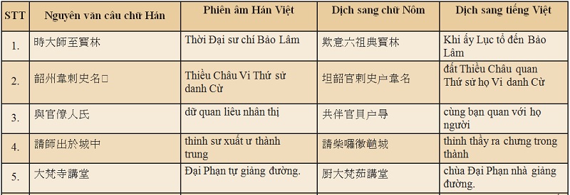 Để thuận tiện cho việc theo dõi, chúng tôi đã tách từng câu chữ Hán và chữ Nôm để đối chiếu. Trong văn bản gốc, cứ một câu chữ Hán thì tác giả dùng một câu chữ Nôm để giải. Nguyên văn chữ Hán thì khắc chữ lớn, phần giải thì khắc chữ nhỏ.