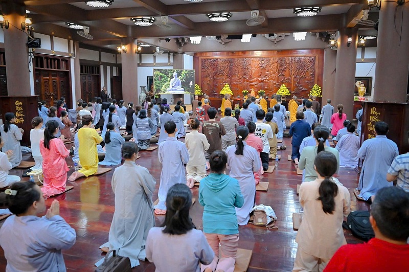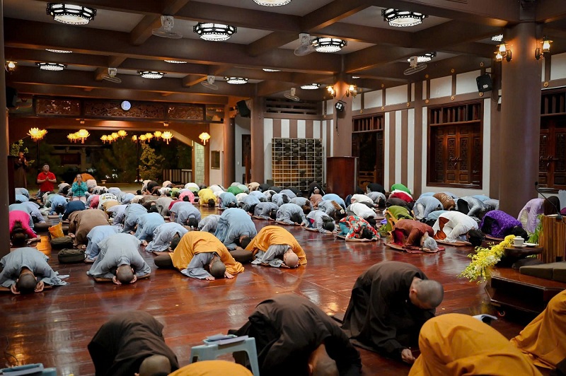 Đại chúng trở về nương tựa cùng lễ lạy 12 hạnh nguyện của Đức Bồ tát, biểu tượng của tình thương và lòng từ vô lượng. Nhân lễ vía thiêng liêng, Thầy Viện chủ đã từ bi chia sẻ đến hội chúng thời pháp thoại.