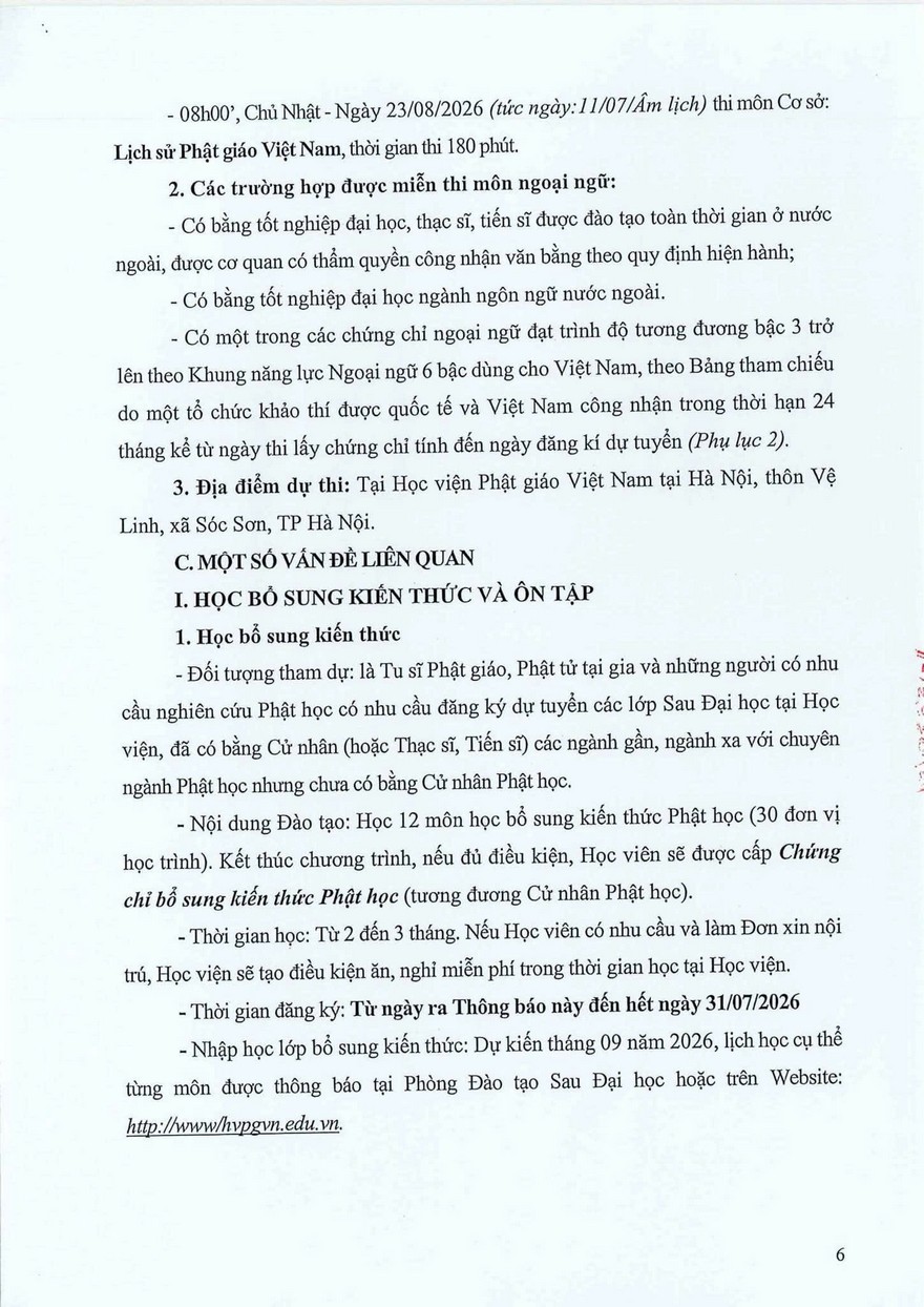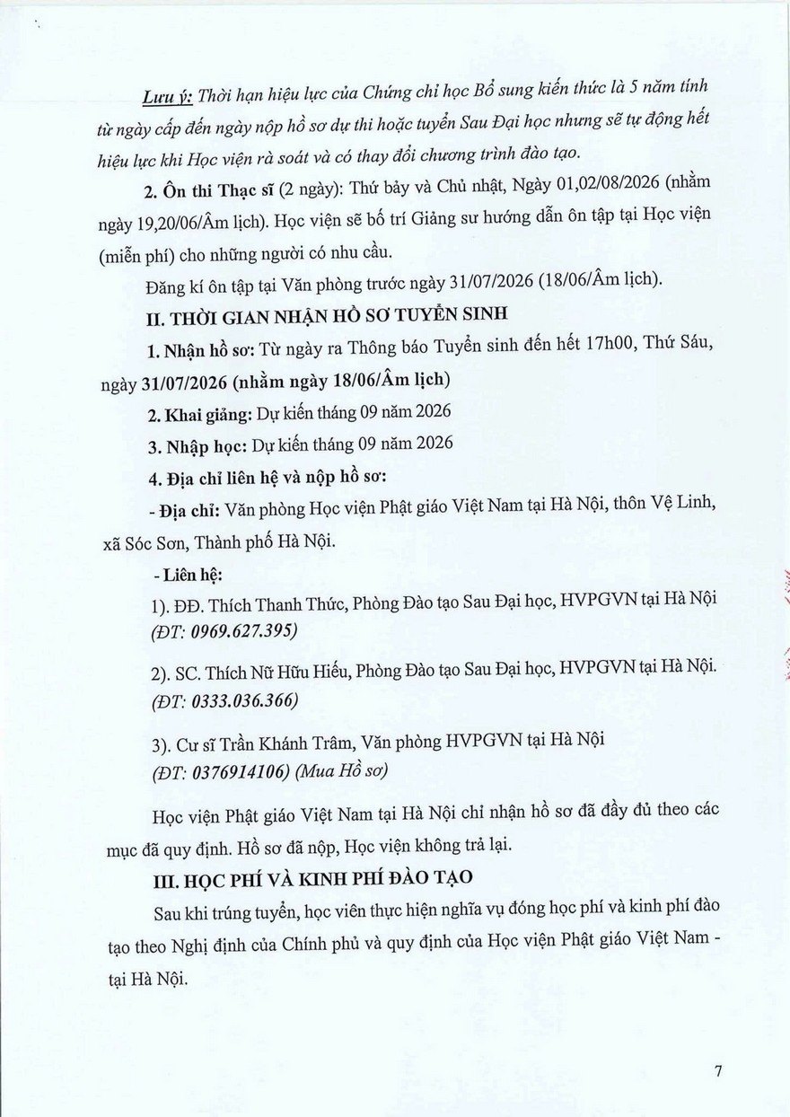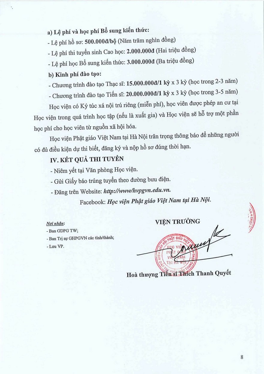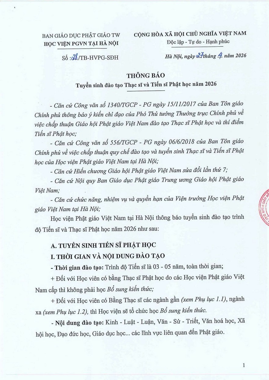 Học viện PGVN tại Hà Nội: Tuyển sinh Đào tạo Thạc sĩ, Tiến sĩ năm 2026