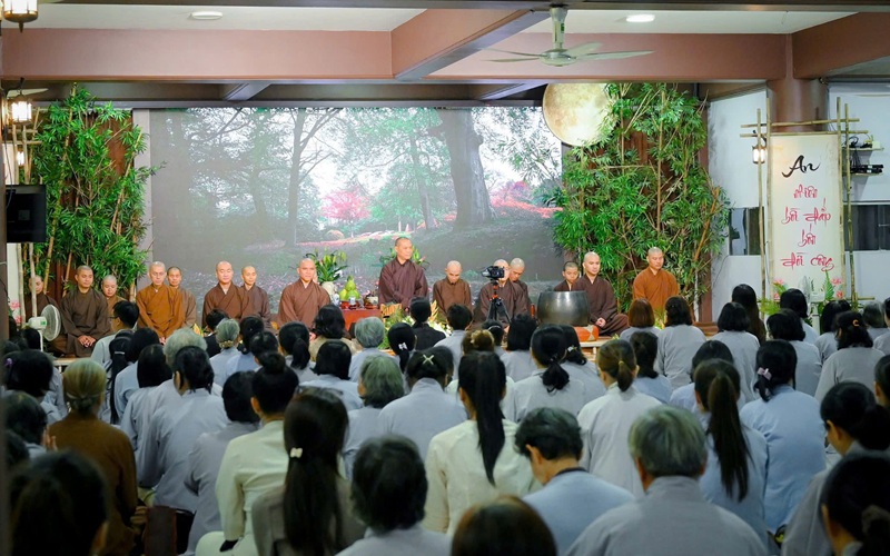 Giữa những dư vị miên man của thời khắc giao mùa, hàng phật tử đã thành tâm cung thỉnh Thầy Viện chủ ban bố thời pháp thoại với chủ đề đầy ý vị: "Khép cửa phù hoa, mở đường tự tại".