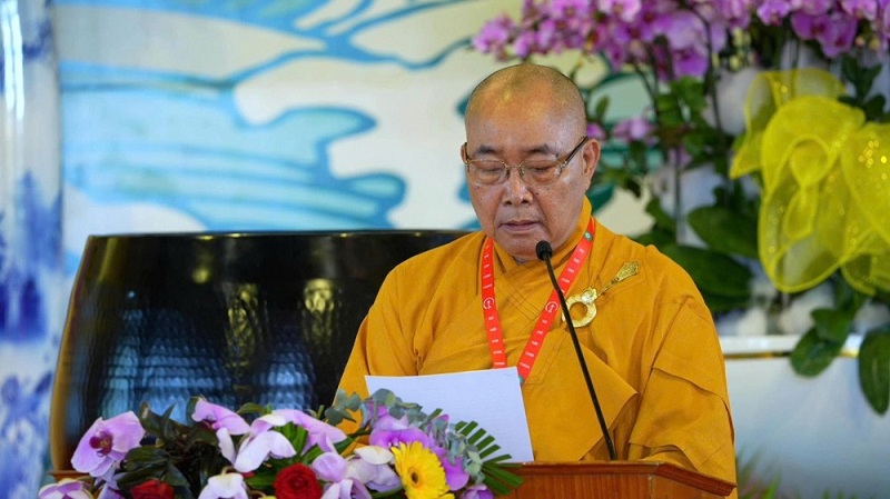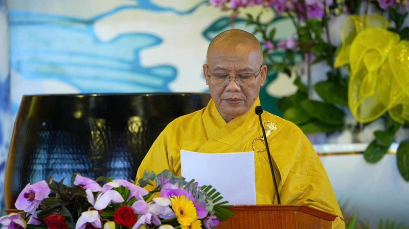 Trước khi diễn ra lễ bế mạc, TT.Thích Thông Triêm đọc văn tưởng niệm đức Vua - Phật hoàng Trần Nhân Tông.