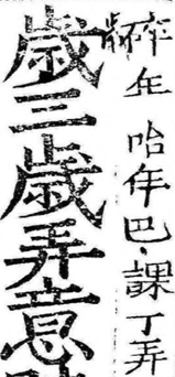 Phật Thuyết Đại Báo Phụ Mẫu Ân Trọng Kinh cột chữ Nôm bên phải ghi "(đến) tuổi nên hai nên ba thuở (khuở) lông" (36a).