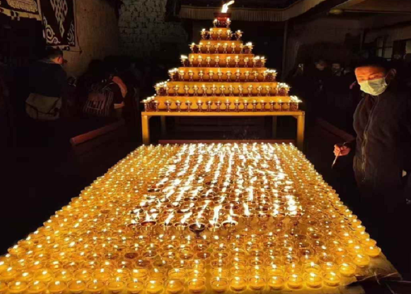 Bước sang ngày Losar đầu tiên – ngày Lama Losar – không khí chuyển từ sự thanh tẩy dữ dội sang sự tôn kính tuyệt đối. Nếu ngày Gutor là của lửa và khói, thì Lama Losar là của hương bơ và ánh sáng.