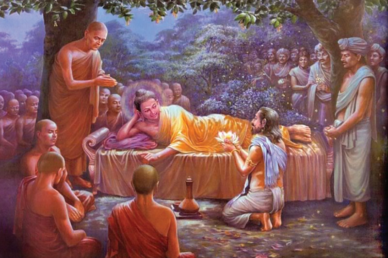 Sau đó, đức Phật dạy Ānanda đi báo cho dân chúng Malla biết là việc Như Lai sẽ nhập Niết- bàn vào canh cuối đêm nay tại rừng cây Sala. Được tin, đông đảo dân chúng Malla, đàn ông, đàn bà, người già, thanh niên, trẻ con tấp nập kéo đến rừng cây Sala bày tỏ lòng tôn kính, thương tiếc và vĩnh biệt đức Phật lần sau cuối. Trong số đó, du sĩ ngoại đạo Subbaddha là người sau cùng được đức Phật cho xuất gia, thọ Đại giới. Không bao lâu sau, Subbaddha đắc A-la-hán. Ðây là vị A-la-hán cuối cùng trước khi đức Phật nhập diệt. Trước lúc nhập Niết-bàn, Ngài cũng đã có những lời căn dặn đối với tứ chúng đệ tử: