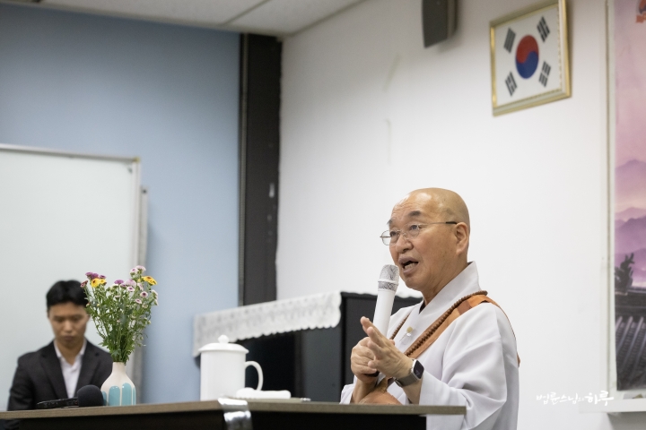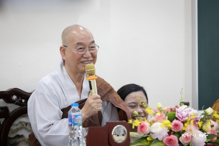 Trong phần chia sẻ mở đầu, Thiền sư Pomnyun Sunim nói: “Hiện nay, Hàn Quốc và Việt Nam đang có sự hợp tác và giao lưu mạnh mẽ trên nhiều lĩnh vực. Có khoảng 200.000 người Hàn Quốc đang sinh sống tại Việt Nam và 300.000 người Việt Nam tại Hàn Quốc, trong đó khoảng 100.000 người đến Hàn Quốc để kết hôn, 100.000 người sang làm việc và 100.000 người sang học tập. Đây là cộng đồng người nước ngoài lớn thứ hai tại Hàn Quốc, chỉ sau người gốc Hoa. Tuy nhiên, so với sự hợp tác về kinh tế và du lịch, thì giao lưu Phật giáo giữa hai nước vẫn còn khá khiêm tốn. Tôi mong rằng trong tương lai, Phật giáo Hàn Quốc và Việt Nam sẽ có thêm nhiều cơ hội để hợp tác và chia sẻ giáo pháp”.