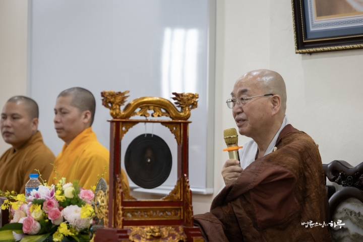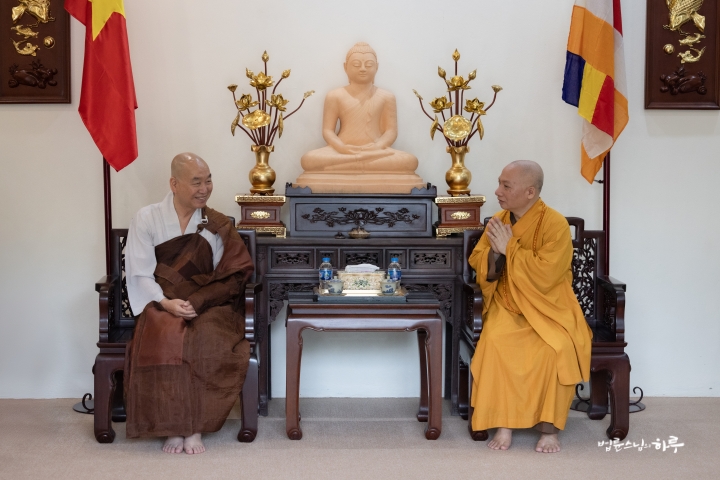 Thiền sư cũng kể lại hành trình hoằng pháp và kết nối của mình với Phật giáo Việt Nam trong những năm gần đây: “Tôi được Giáo hội Phật giáo Việt Nam mời thăm Thành phố Hồ Chí Minh vào tháng 3 năm 2023. Khi ấy, tôi đã viếng thăm nhiều ngôi chùa, đàm đạo với chư tăng và đỉnh lễ Chủ tịch Hội đồng Trị sự. Sau đó, tôi mời quý ngài sang Hàn Quốc và đến tháng 10 cùng năm, Chủ tịch và Phó Chủ tịch Giáo hội Phật giáo Việt Nam đã sang thăm Hàn Quốc. Chúng tôi cùng thống nhất sẽ tăng cường giao lưu Phật giáo và hỗ trợ cộng đồng hai nước trong đời sống tu học cũng như sinh hoạt xã hội”.