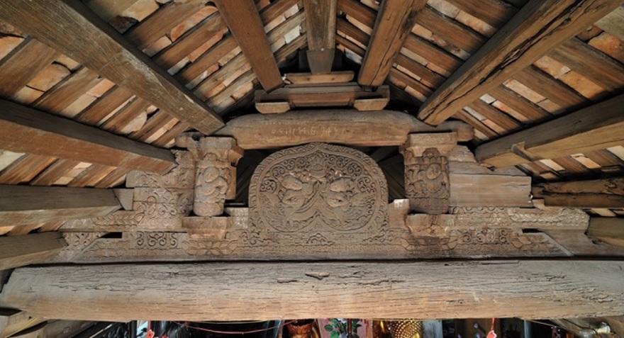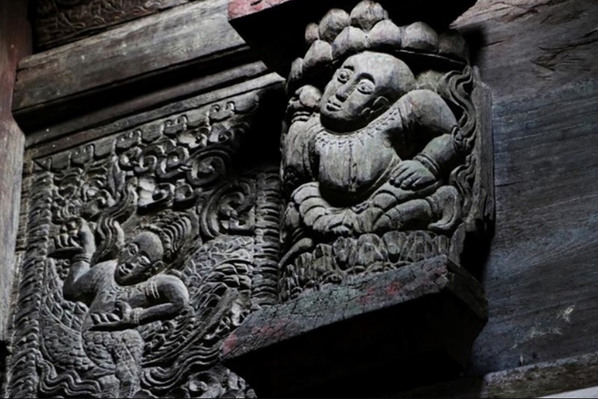 Chùa Thái Lạc còn giữ được bộ vì gỗ ở gian giữa tòa thượng điện, kiến trúc từ thời Trần, còn khá nguyên vẹn. Loại hình này ở nước ta rất hiếm, ngoài chùa Thái Lạc chỉ còn thấy ở chùa Dâu, chùa Bối Khê. Bộ vì kiến trúc kiểu giá chiêng, dựa trên kết cấu bốn hàng chân cột. Trên bộ vì được kết hợp hài hòa giữa kiến trúc và trang trí. Trên các cốn, các đố của bộ vì và trên các cột, đấu có nhiều mảng chạm khắc lớn. Nếu nguyên vẹn, có khoảng 20 bức chạm nổi các đề tài khác nhau, hiện nay chùa “lưu giữ” 16 bức. Trên ván bưng chạm tiên nữ đầu người mình chim. Trên thân cột trụ chạm hình các ông phỗng giơ tay đỡ bệ sen phía trên. Còn trên ván nong trang trí đề tài các tiên nữ: Nơi tiên nữ đang cưỡi phượng, người thổi tiêu, người kéo nhị; Nơi khác, tiên nữ đang thổi sáo, đánh đàn; Có cả cảnh tiên nữ đầu người mình chim đang giơ tay dâng hoa. Độc đáo hơn còn có cảnh chạm dàn nhạc ba người đang sử dụng những nhạc cụ dân tộc.
