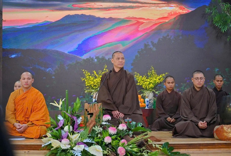 Cuối lời, Thầy nhắn nhủ đại chúng hãy thực tập sống với bốn tâm vô lượng, ở bất cứ hoàn cảnh nào cũng phải nuôi dưỡng Từ, Bi, Hỷ, Xả, mở rộng trái tim với người thân rồi đến người xa lạ và tất cả mọi loài trong vô lượng thế giới. Ở đâu có khổ đau, ở đó ta có mặt. Khi miền Trung đang oằn mình trong giông bão, chúng ta hướng về bằng tất cả tình thương và hành động. Nhưng Thầy muốn nhắc rằng: giông bão thật sự cũng đang diễn ra trong chính mỗi chúng ta. Chúng ta hướng về miền Trung thương miền giông bão nhưng cũng đừng quên quay về nhận diện “giông bão” trong thân tâm mình. Cố gắng tu tập để vững chãi vượt qua những bão giông ấy, thấy rõ tứ đại - ngũ uẩn, thấy rõ thực tánh của chính mình. Chỉ như vậy, ta mới có thể tiếp nối trọn con đường mà Đức Thế Tôn đã truyền trao.
