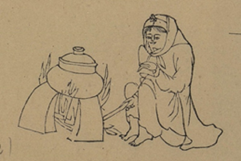 Tranh trong sách “Technique du peuple annamite” (Kỹ thuật của người An Nam) của Henri Oger, in năm 1908-1909 tại Hà Nội. Trước đó khoảng ba thập niên, thi nấu cơm cũng được cụ Trương Vĩnh Ký ghi lại trong Chuyến đi Bắc Kỳ năm Ất Hợi (1876), mô tả khá trung thực so với hình vẽ từ tài liệu của Oger "Nấu cơm thì là phải nấu thi coi thử ai chín trước, và khéo khỏi cháy khỏi khê khỏi khét. Người ta đưa cho ít cái đóm với bã mía hay là rơm, thắp cầm hơ đút nồi mà nấu." (hết trích).