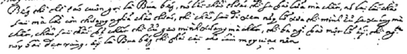 "Bếp thì thờ táo quân (cuôn) gọi là vua bếp (ꞗua bếp, ꞗ viết hoa kiểu thảo trong thư), nó lấy chồng trước (tlước) thì sa vào lửa mà chết, nó lại lấy (lấϊ) chồng sau mà lòng còn thương nghĩa chồng trước, thì chồng sau đi xem nơi lỗ xưa thì mình cũng sa xuống mà chết, chồng sau thấy vợ chết thì cũng gieo mình xuống mà chết, thì ba người vào một lỗ ấy, thì người ta nói bày đặt rằng, ấy là vua bếp thì phải cậy (cậϊ) cho làm mọi việc nên” (hết trích).