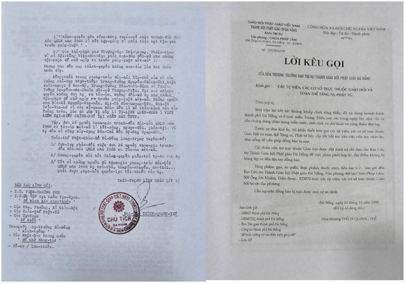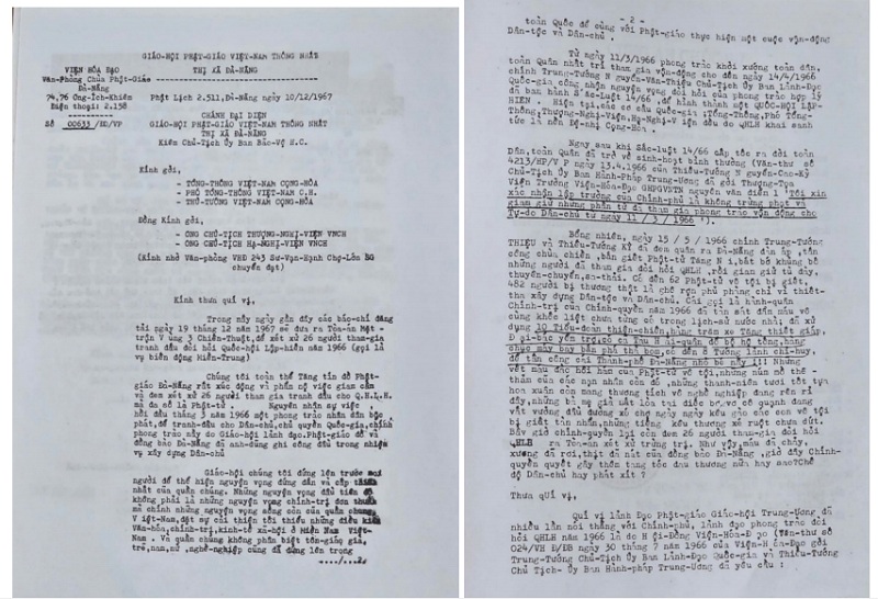 Khi đồng bào Phật tử và nhân dân thành phố Đà Nẵng đứng lên tranh đấu đòi hỏi Quốc hội Lập hiến vào năm 1966, thì trong đó có 26 người đã bị bắt và đem ra xét xử. Để phản đối việc làm trên, vào ngày 10/12/1967, Hòa thượng với vai trò là Chánh Đại diện GHPGVNTN Thị xã Đà Nẵng, đã gửi công văn số 00633/ĐD/VP đến Tổng thống Việt Nam Cộng hòa cùng chính quyền đương thời tại miền Nam Việt Nam, nhằm lên án việc đưa quân ra Đà Nẵng để đàn áp cuộc tranh đấu của đồng bào và nhân dân, và trả tự do cho những người đã bị bắt giam, trong công văn ghi rõ: “Toàn thể Phật giáo đồ Đà Nẵng long trọng tuyên bố: Cực lực phản đối việc đưa 26 người tham gia tranh đấu đòi hỏi QHLH năm 1966 ra Tòa án xét xử; Cương quyết đòi hỏi Chính quyền phải trả tự do cho họ; Tất cả những người đã tham gia phong trào đòi hỏi QHLH năm 1966 bị trả thù, thuyên chuyển, sa thải... phải được phục hồi quyền lợi tối thiểu của họ”. (21)