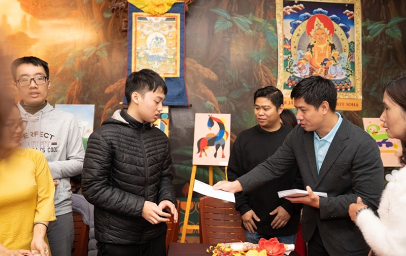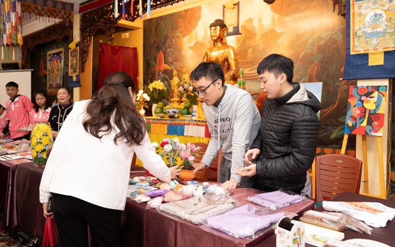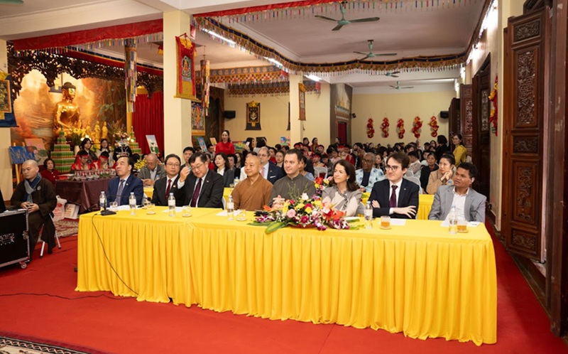 Những món quà nhỏ, tình yêu thương lớn. Không chỉ là những phần quà vật chất thiết thực chuẩn bị cho Tết Nguyên Đán, mỗi món quà được trao đi còn chứa đựng tình cảm chân thành và sự quan tâm sâu sắc từ các nhà hảo tâm. Hình ảnh từ bi của Quý thầy, các Đại sứ ân cần trao quà, đại diện các tổ chức quốc tế và Việt Nam cúi xuống trò chuyện, nắm tay các em nhỏ đã tạo nên những khoảnh khắc xúc động, chạm đến trái tim của mọi người tham dự.