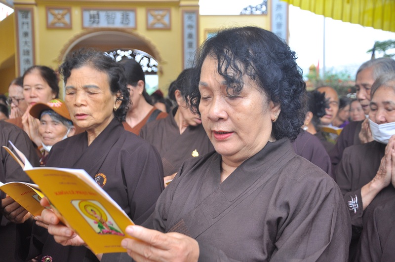 Từ chiều ngày 26/04, hàng trăm bà con phật tử đã vân tập về chùa cùng cúng đàn Mông Sơn Chuẩn tế bố thí cô hồn và tụng Kinh cầu quốc thái, dân an.
