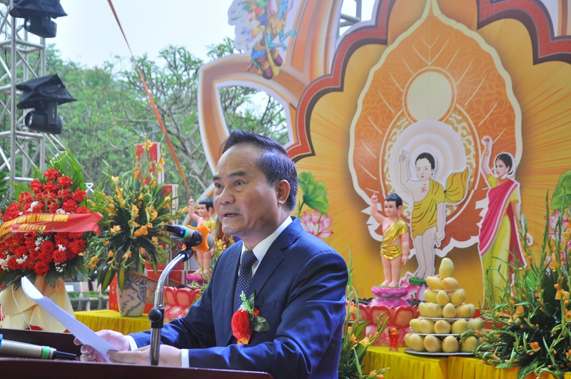 Tiếp đó, sau khi Hòa thượng Thích Gia Quang Phó Chủ tịch Hội đồng Trị sự, Trưởng ban Trị sự Phật giáo tỉnh Tuyên Quang, trụ trì chùa Phú Lâm tuyên đọc diễn văn Đại lễ Vesak Liên Hợp Quốc 2025, Đại lễ Phật đản Phật lịch 2569; Hòa thượng Thích Bảo Nghiêm, Phó Chủ tịch Hội đồng Trị sự, Trưởng ban Hoằng pháp Trung ương phát biểu: “Với tâm nguyện trùng hưng Tam Bảo, phục hưng giá trị văn hóa - tâm linh cho quê hương, dưới sự lãnh đạo đầy trí tuệ và từ tâm của Hòa thượng Thích Gia Quang - Phó Chủ tịch Hội đồng Trị sự, Trưởng Ban Trị sự GHPGVN tỉnh Tuyên Quang, công trình đại trùng tu chùa Phú Lâm đã được khởi dựng. Đây không chỉ là một công trình kiến trúc, mà là biểu tượng của niềm tin, của sự kiên định và tâm huyết phụng sự Đạo pháp - Dân tộc.