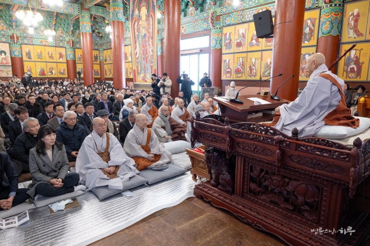 Sau phần phát biểu chúc mừng của các vị khách mời và quan chức tham dự, Trưởng lão Hòa thượng Bulsim Domun đã có một thời pháp hiếm hoi, chia sẻ về con đường chứng ngộ và di sản tâm linh của Thiền sư Yongseong: