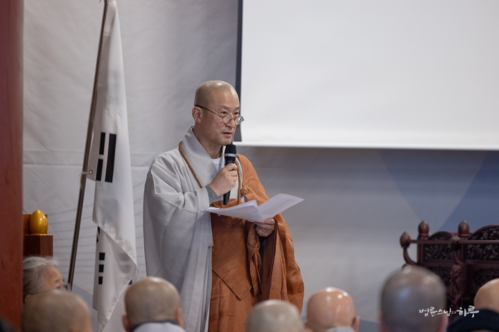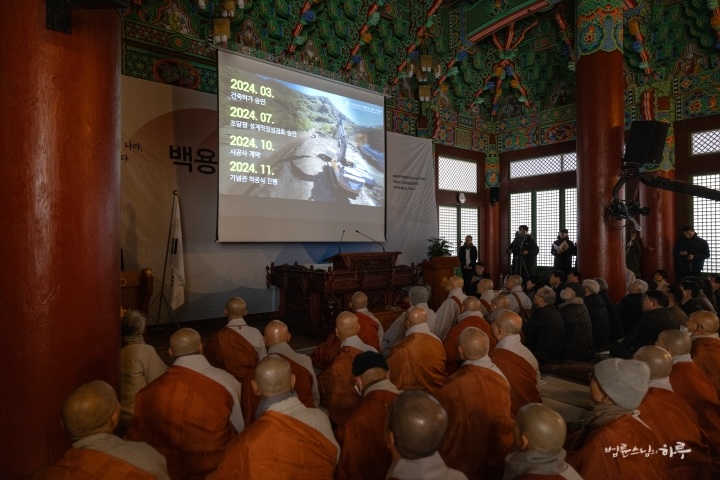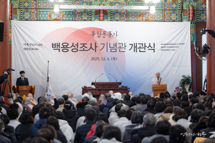 Khi khoảng 400 đại biểu vân tập tại chính điện chùa Jukrimjeong-sa, Hòa thượng Pomnyun Sunim đã có bài phát biểu chủ đạo, chia sẻ những suy tư sâu sắc xoay quanh ý nghĩa của Nhà tưởng niệm Thiền sư Baek Yongseong và di sản tinh thần mà Ngài để lại:
