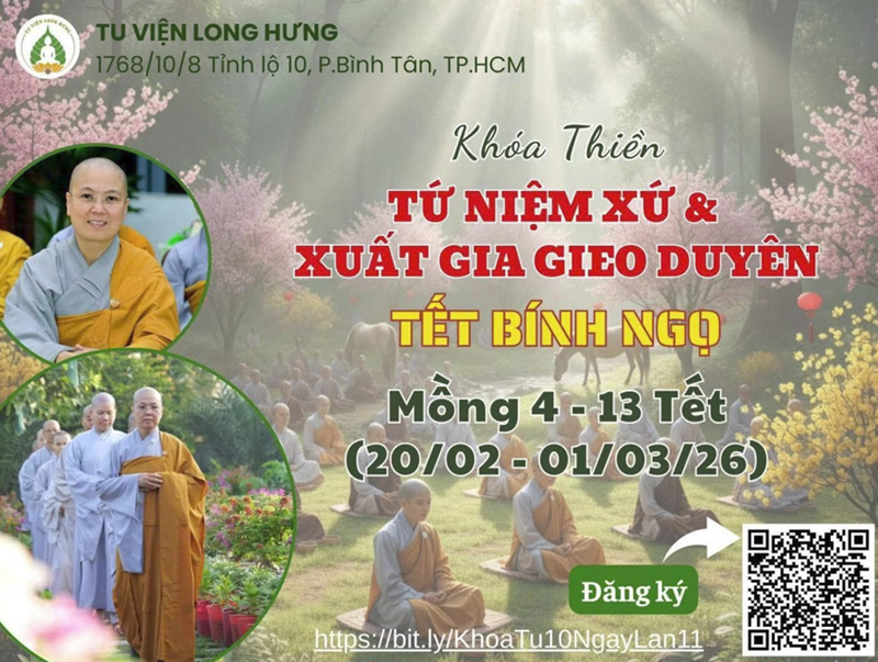 Còn món quà nào ý nghĩa hơn khi ta dành cho bản thân một khoảng lặng để dừng lại, thở sâu và trở về với chính mình. Khóa thiền 10 ngày tại Tu viện Long Hưng, được tổ chức vào đúng dịp Tết Nguyên đán Bính Ngọ, mở ra cơ hội quý báu để khởi đầu năm mới bằng sự tỉnh thức, nuôi dưỡng bình an trong từng hơi thở, từng bước chân chính niệm.