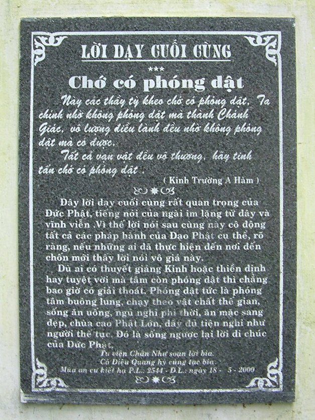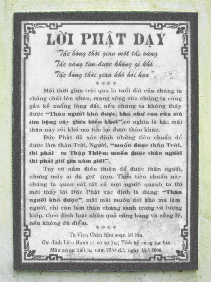 Vì Chùa Am là nơi tu hành, nên giới luật phải nghiêm chỉnh, nếu không nghiêm chỉnh thì chính bản thân người tu sĩ đã xem thường giới luật đức hạnh của Phật; khi đã xem thường giới luật đức hạnh của Phật thì còn tu tập pháp môn nào được? Xin quý vị nhớ, con đường tu tập theo Phật giáo lấy Giới Luật làm pháp môn tu tập hàng đầu. (136)